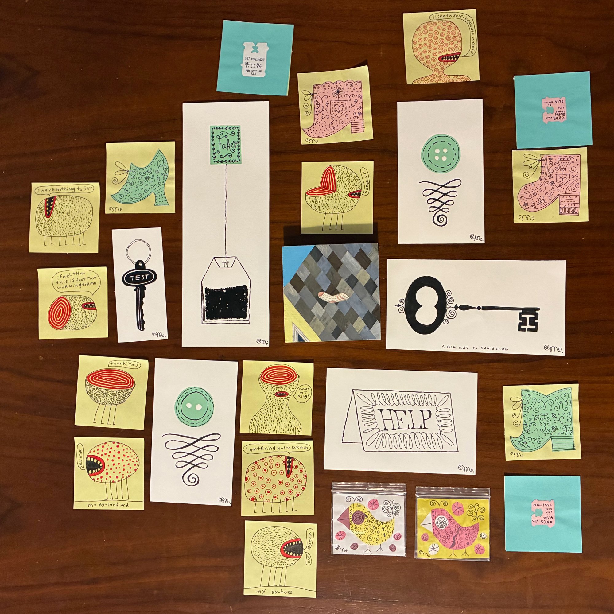 All original art of various media, smaller than 6." Please send me an image with the item number you would like to purchase. Image number can be seen: https://www.instagram.com/p/DSNiE_UkZR6/?img_index=1